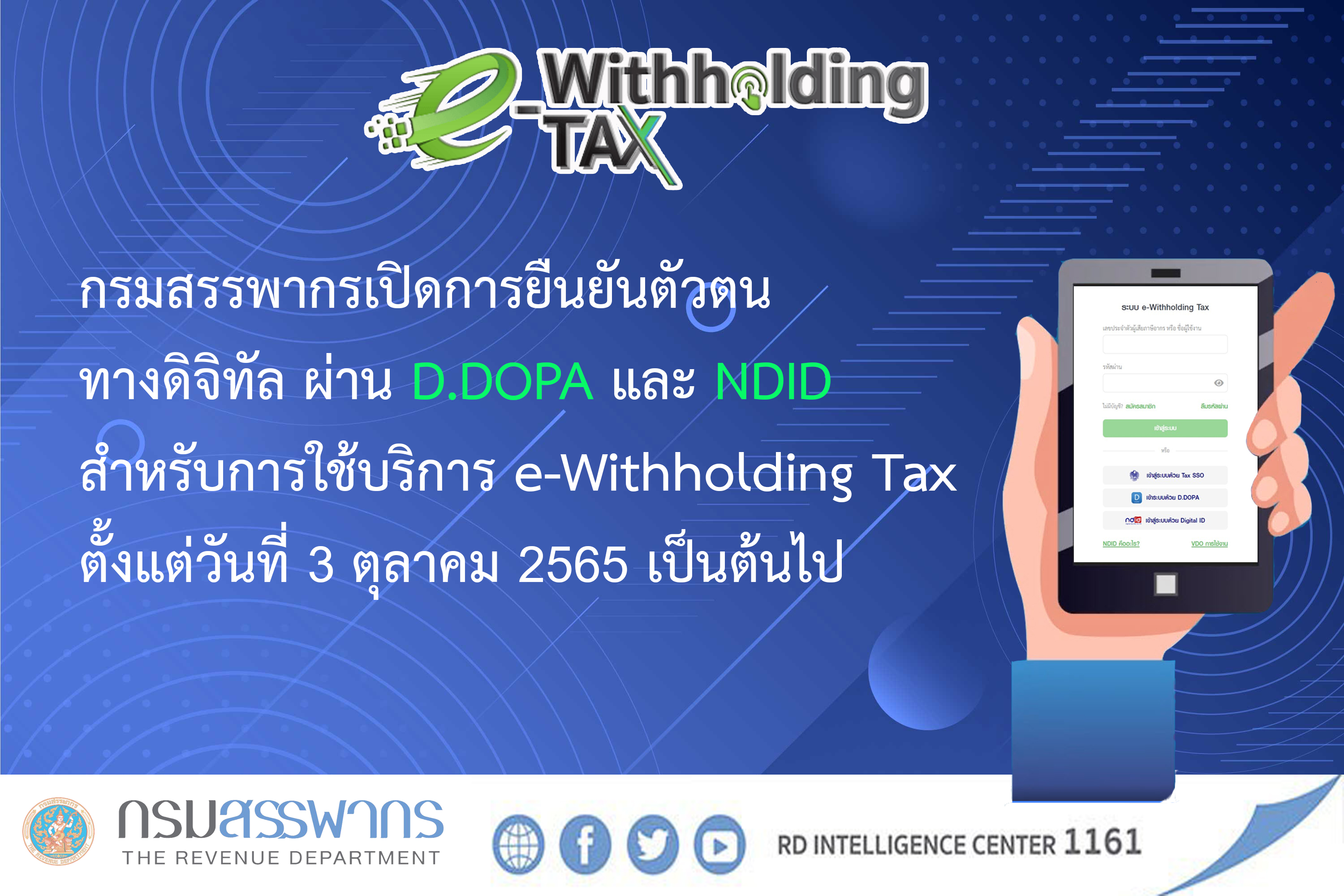 กรมสรรพากรขยายเวลามาตรการภาษีเพื่อส่งเสริมระบบภาษีหัก ณ ที่จ่ายอิเล็กทรอนิกส์ (e-Withholding Tax)